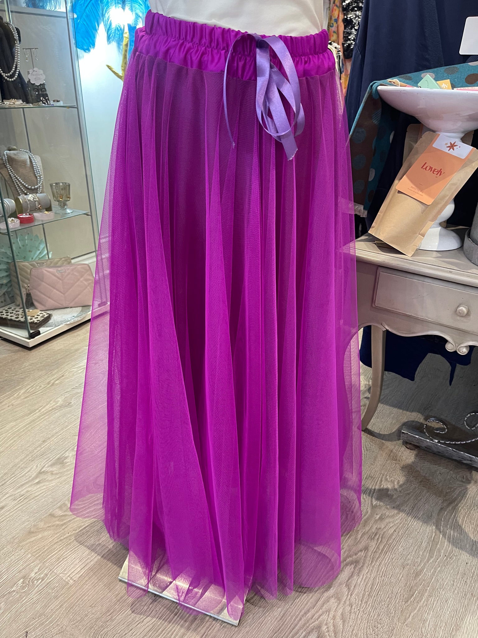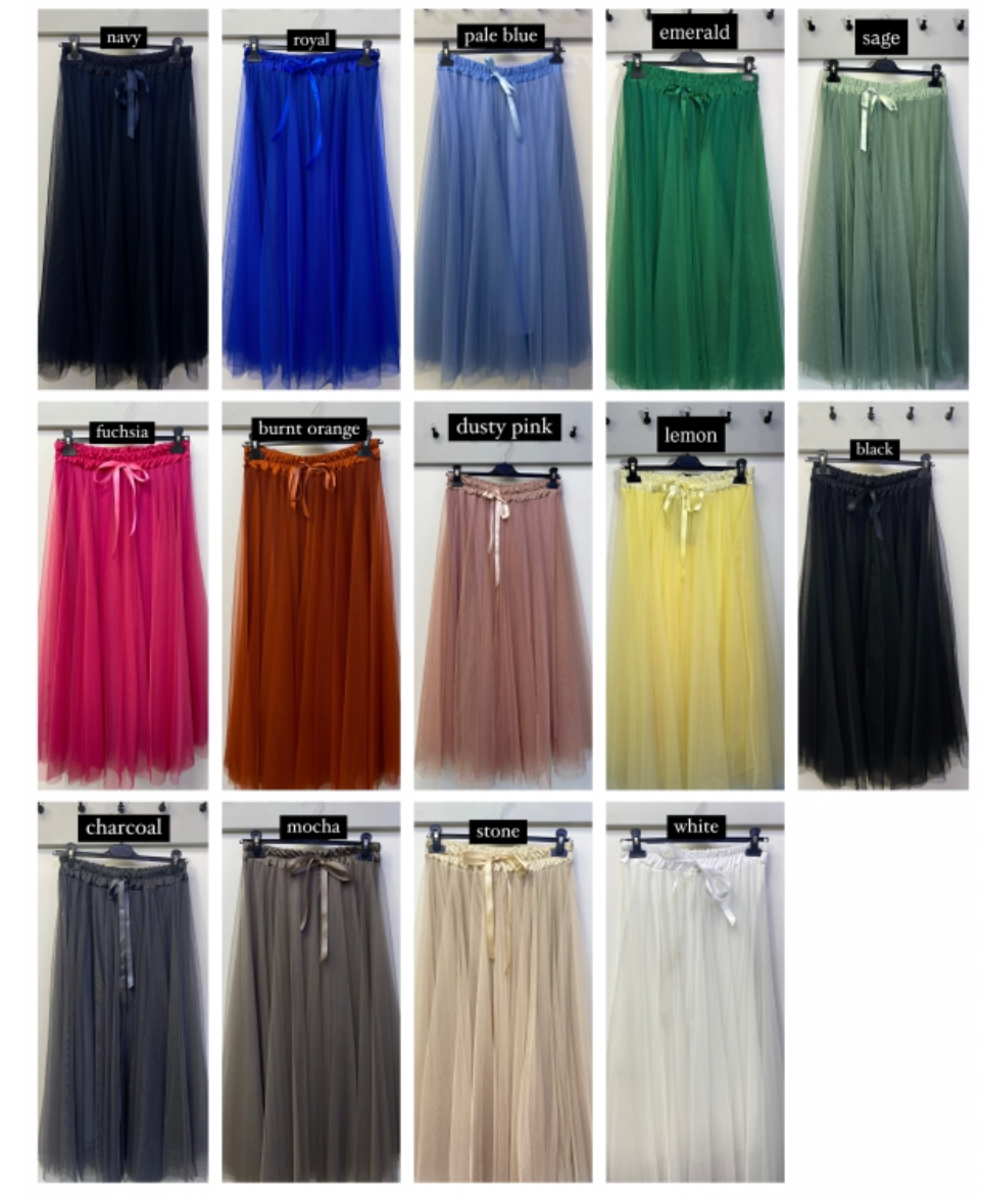 Elevate your wardrobe with this versatile tulle skirt, designed for effortless elegance. Featuring a refined satin waistband and fully lined construction, it offers both comfort and sophistication. The stretch waist ensures a flattering fit across sizes UK10-UK16, while the dramatic tulle fabric creates an undeniably striking silhouette. Available in an extensive palette of colours to suit your personal style. Machine washable for convenient care.